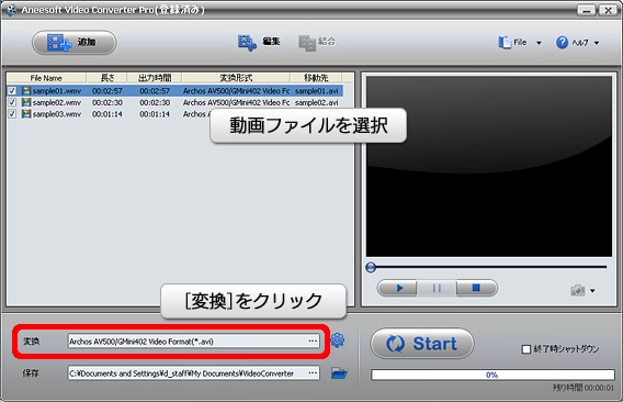 5. 変換したい動画にチェックが入っているのを確認し、画面右下にある[Start]ボタンをクリックすると変換が開始されます。