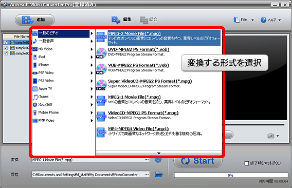 3. 表示されるリストの中から、変換したい形式をクリックします。