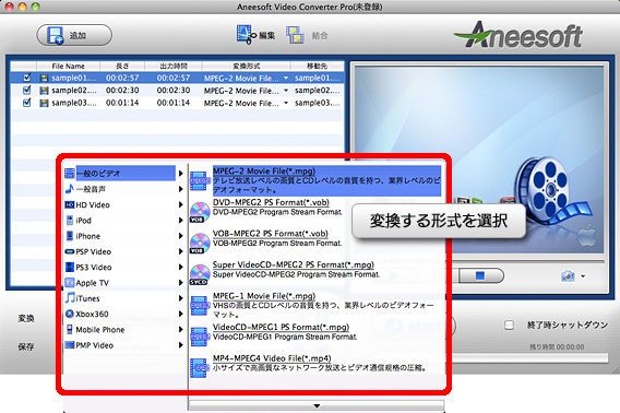 3. 表示されるリストの中から、変換したい形式をクリックします。