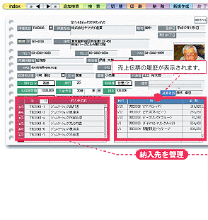 | 多彩な情報を登録し、得意先・仕入先・商品データ管理を効率的に行うことができます。 |