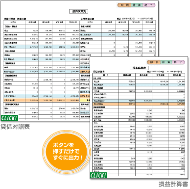 残高試算表の他、総勘定元帳、摘要リスト(入力された摘要ごとの一覧)、損益科目目次集計(損益科目の取引を月ごとに集計)、削除ログ(過去のすべての削除データの一覧)を出力することができます。